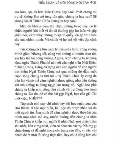 Tác phẩm giúp ta hiểu rằng hành trình thiêng liêng không tách rời thế giới, nhưng hòa vào đó để biến đổi nó từ bên trong. Đây là cuốn sách gợi mở, sâu lắng và giàu sức nâng đỡ cho những ai đang tìm kiếm chiều sâu tâm hồn.